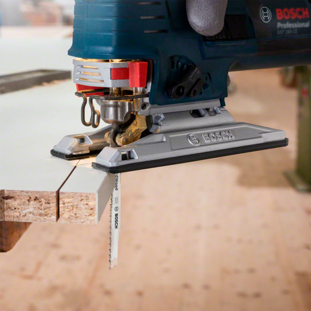 Las hojas de tipo “limpias para madera” de Bosch cortan limpiamente y dejan una superficie más lisa en ambos lados de la pieza de trabajo.