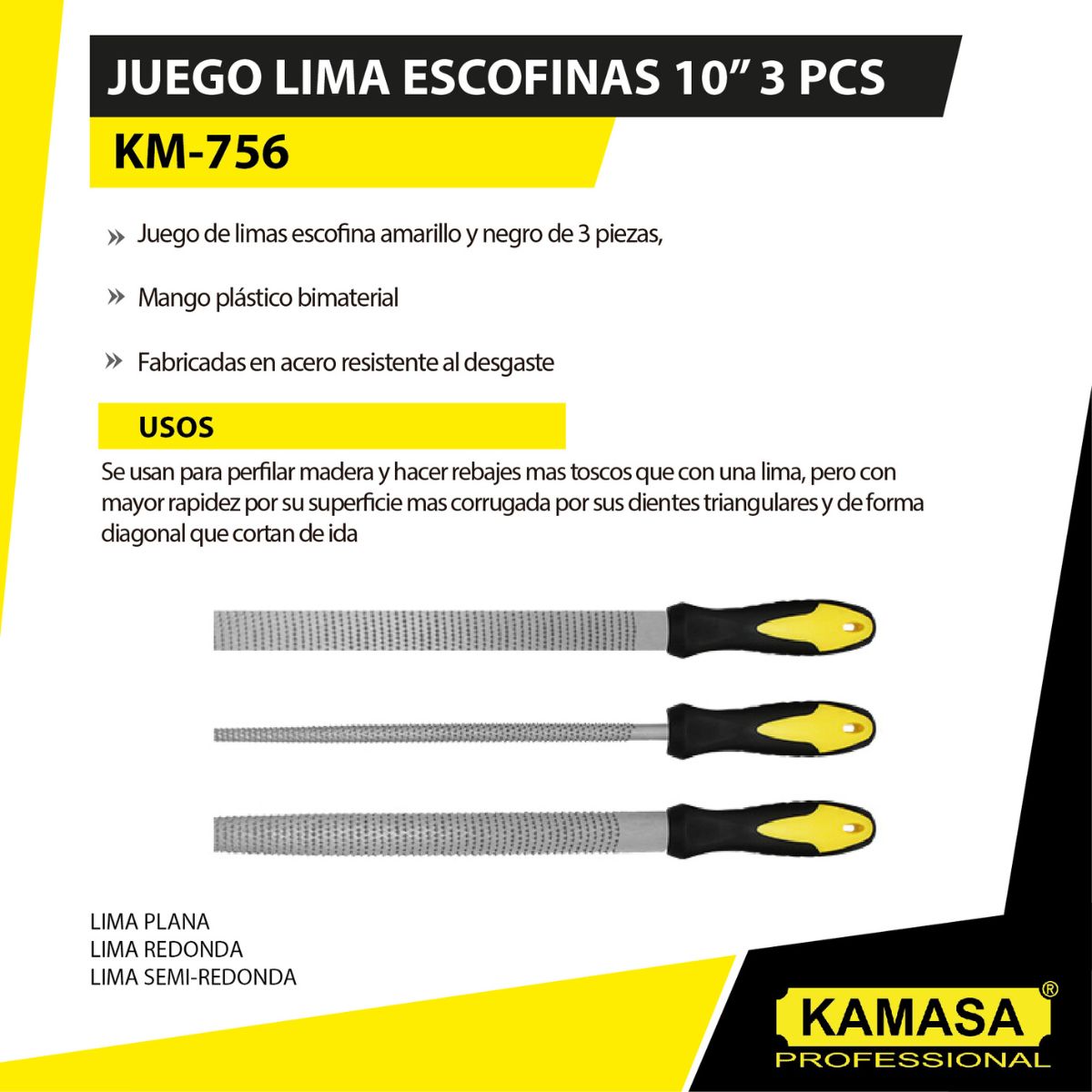 Juego de limas escofinas 10″ 3pzs goma Kamasa