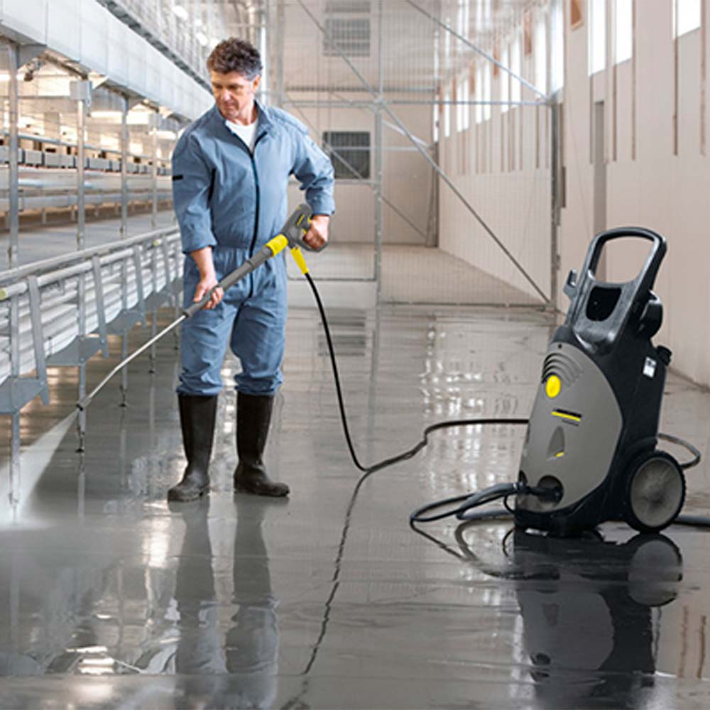 La limpiadora de alta presión con agua fría HD 10/25-4 S con accionamiento trifásico convence por su comodidad de uso y por su extraordinaria potencia de 250 bar con un volumen de caudal máximo de 1000 l/h.