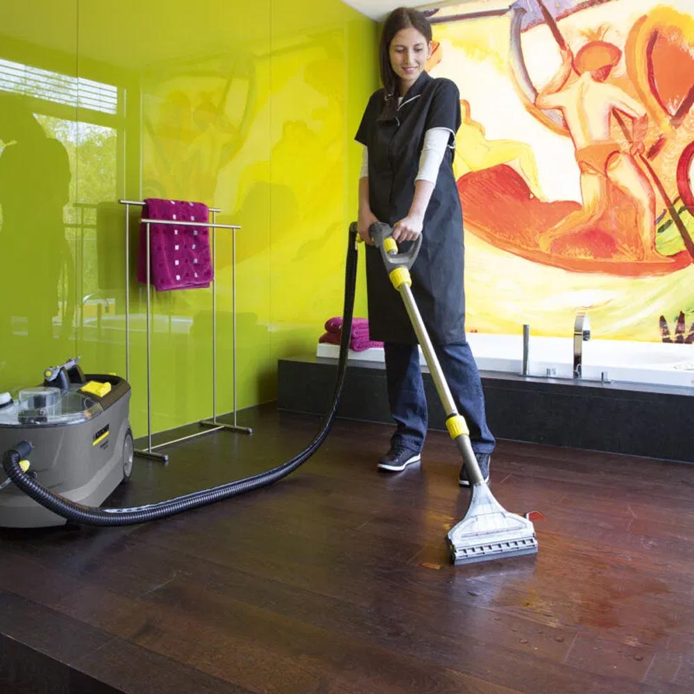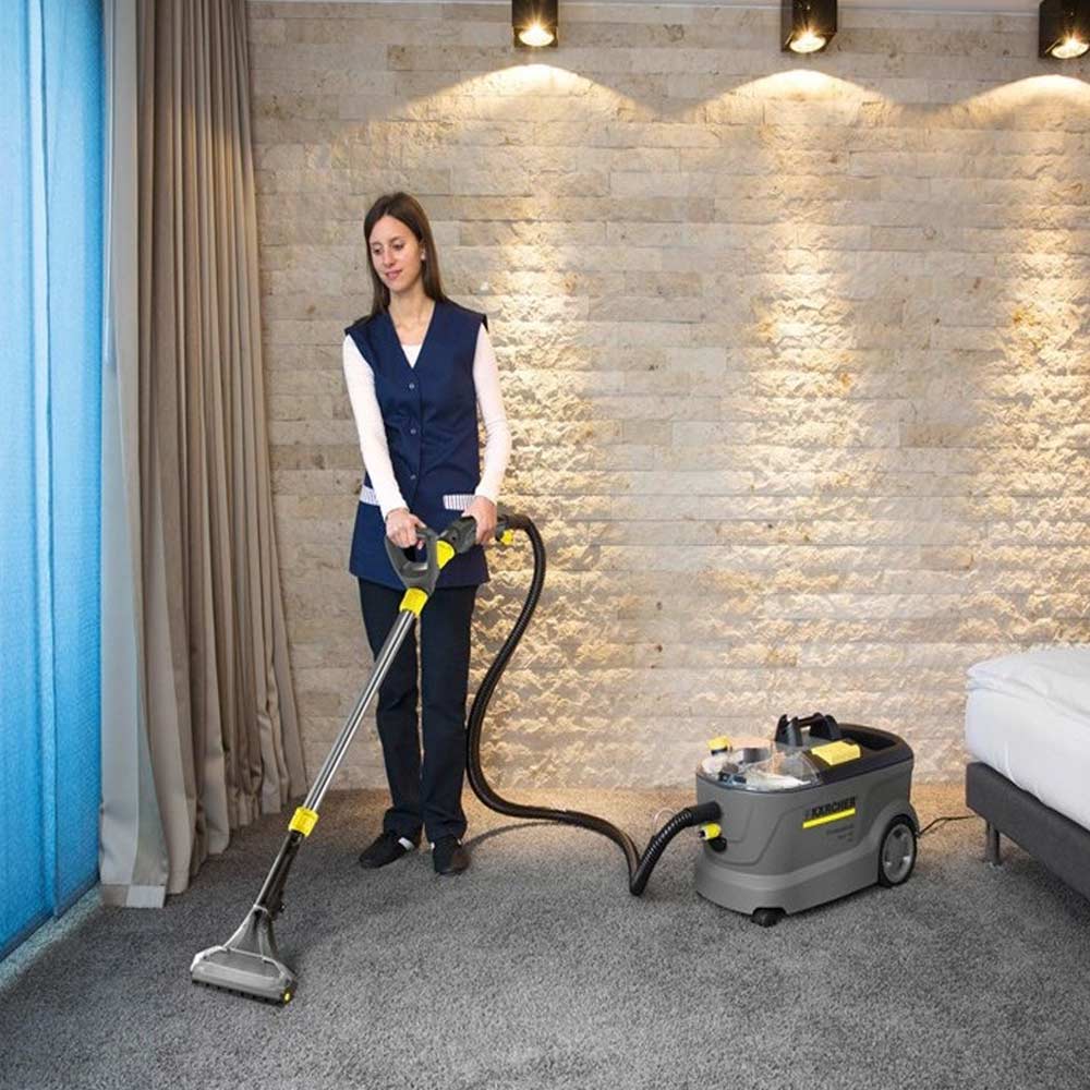 Puzzi 10/2 Adv, el equipo de pulverización y aspiración con una presión de pulverización de 2 bar. Ideal para la limpieza de superficies textiles.