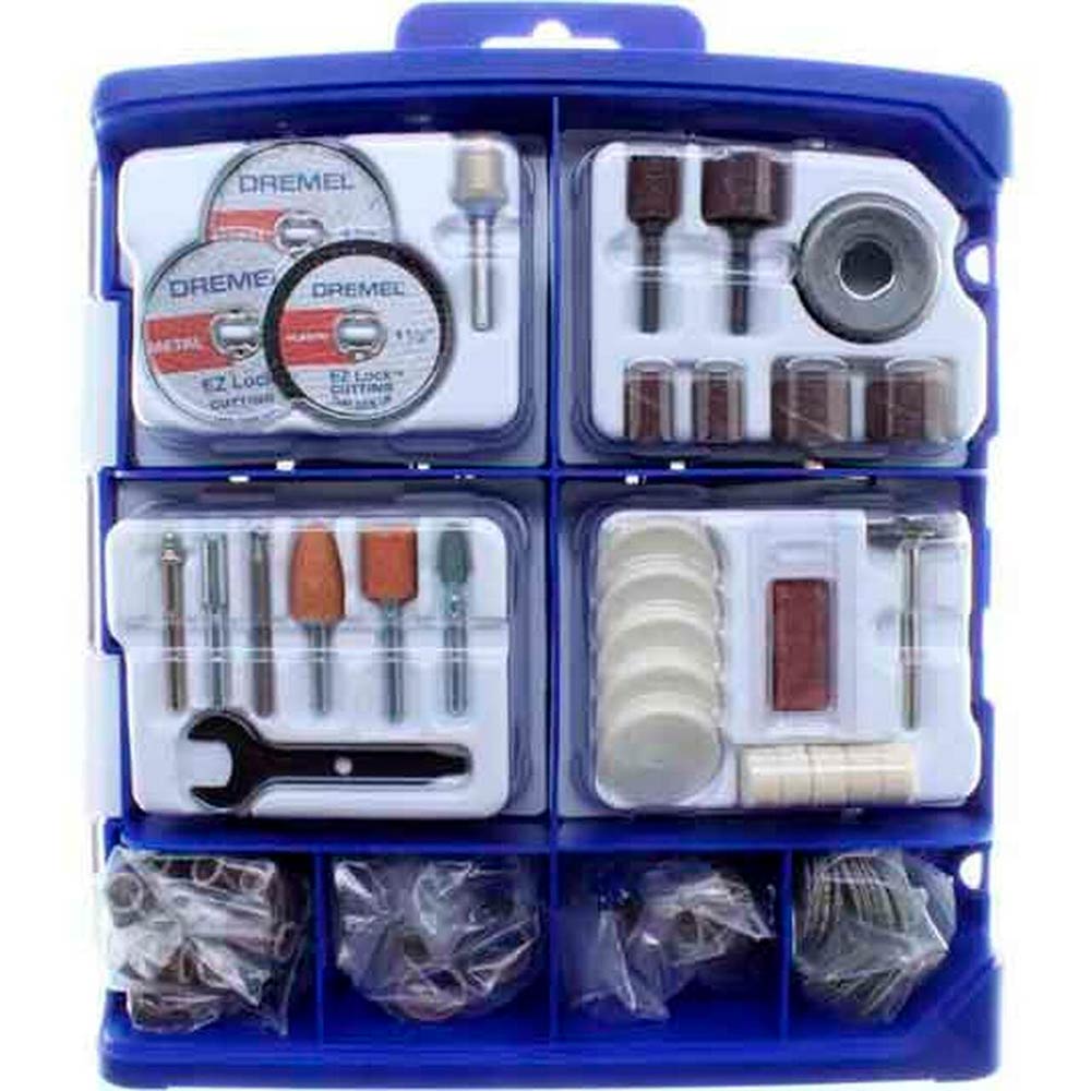 Con compartimentos reutilizables de almacenamiento y bandejas desmontables para organizar fácilmente las brocas incluidas, este kit sirve para cortar, esmerilar, pulir, lijar, limpiar y más.