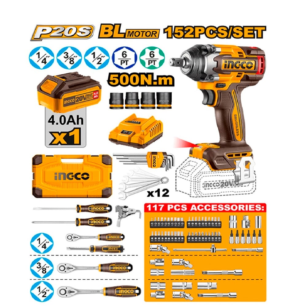 Kit Llave de Impacto 500NM 1BAT 4AH + 152 Piezas HKTHP31521