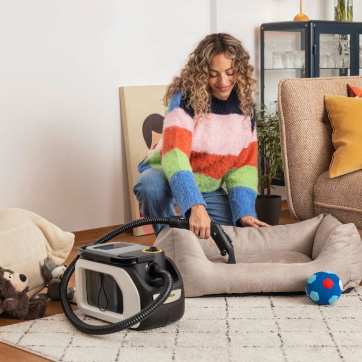 Incorpora función de enjuague higiénico que limpia el interior del equipo, evitando la formación de bacterias y malos olores. Su sistema de manguera integrada, junto con accesorios especializados, permite limpiar superficies grandes, tapicerías verticales y zonas difíciles con total comodidad.