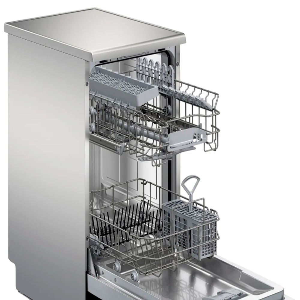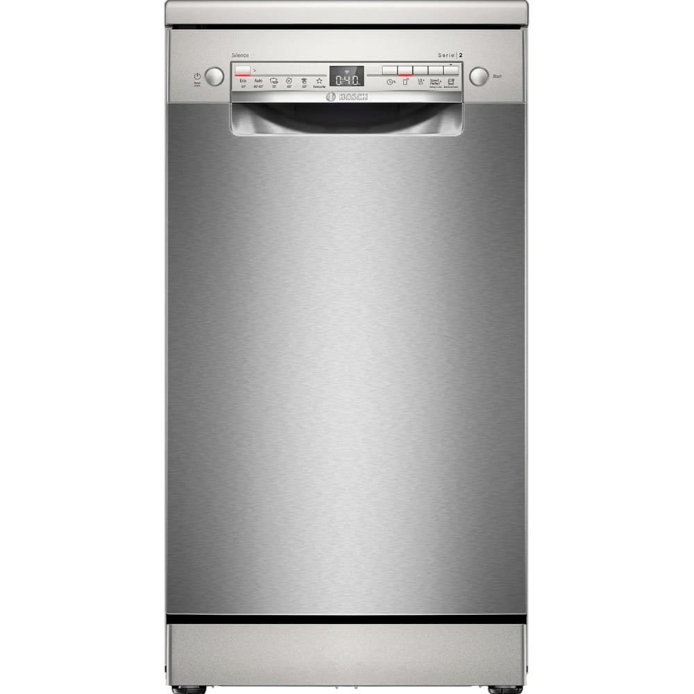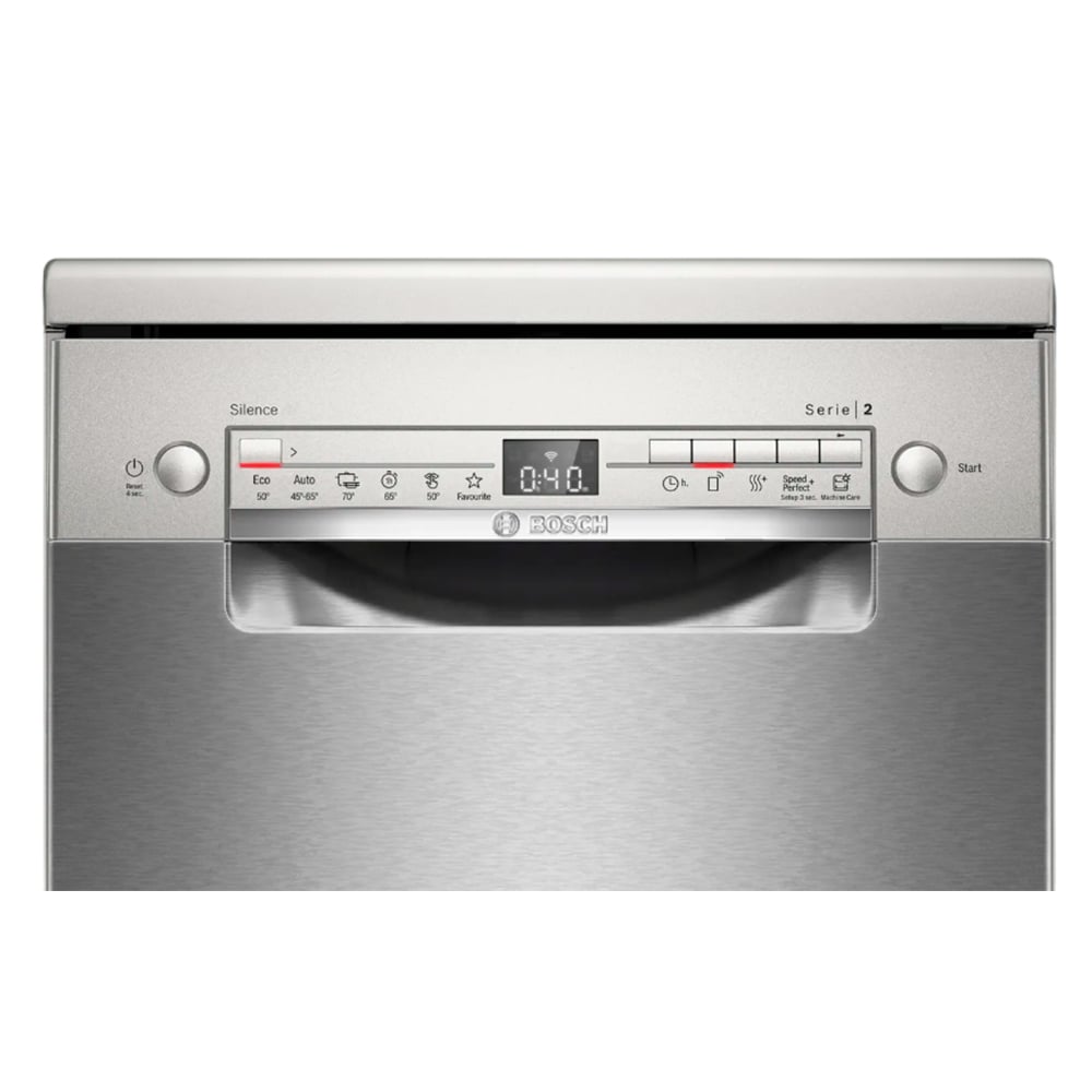 Pertenece a la Serie 2 de Bosch, y está diseñado para ofrecer un alto nivel de funcionalidad en un formato compacto (45 cm de ancho) ideal para cocinas más pequeñas o espacios reducidos. Combina acabado en acero inoxidable antihuellas, capacidad para ~10 servicios/cubiertos, tecnología inteligente con conectividad vía app (Home Connect), y una eficiencia destacable tanto en consumo de agua como de energía. Entre sus puntos más atractivos están el sistema de secado extra, el programa automático que adapta temperatura y presión del agua según la suciedad, y la opción de control remoto.
