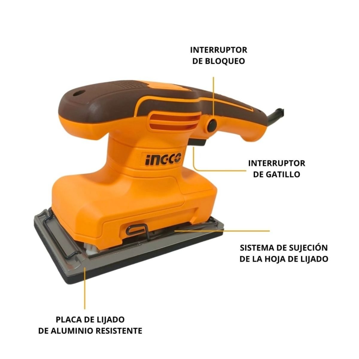 Lijadora Orbital Ingco FS3216 320W 1/3 Pliego + 5 Lijas
