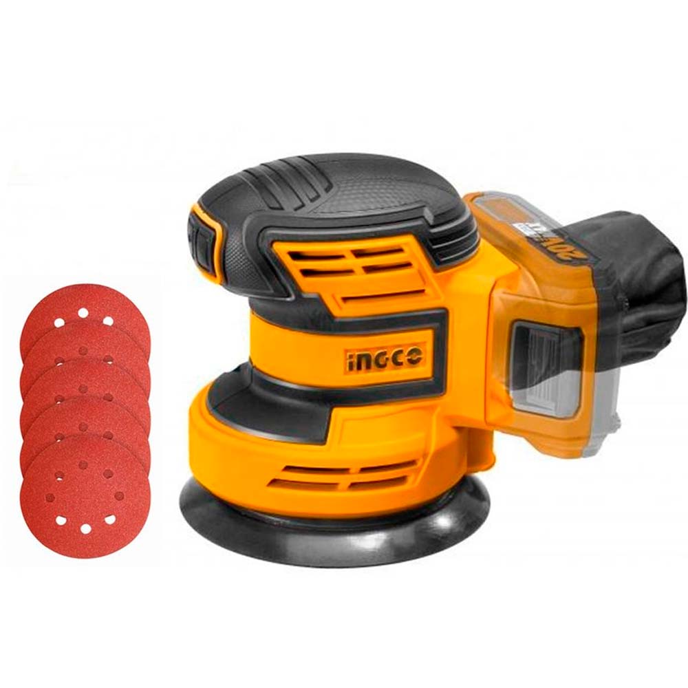 Lijadora Excentrica Ingco CROSLI2001 5″ 20V + Lijas Sin Bat