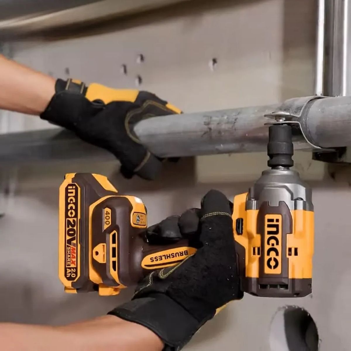 Llave De Impacto 1/2″ Ingco 20V 400Nm Brushless + Linterna Led