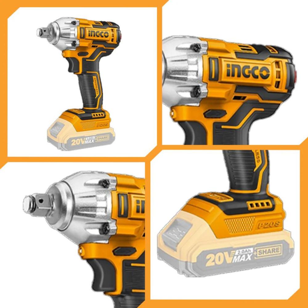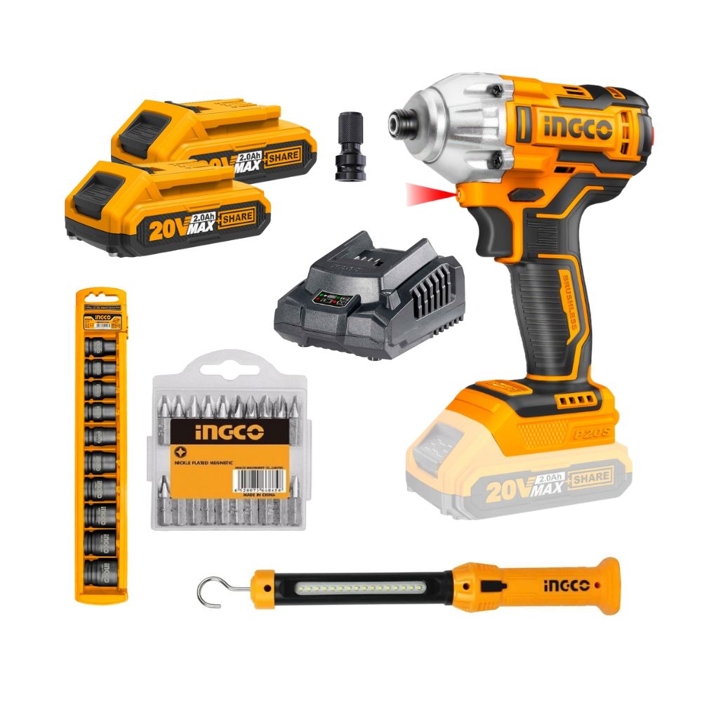 Combo llave de impacto 20V INGCO+Lampara magnetic+set dados+puntillas atornillador imantado