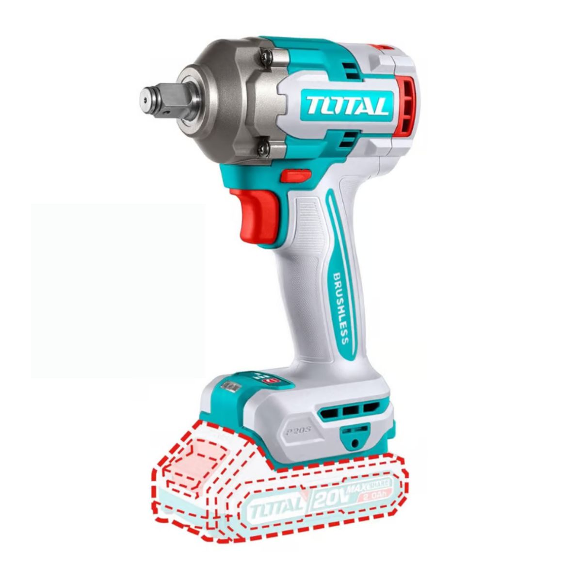 Llave de impacto inalámbrica 1/2″» Litio-ion 20V TOTAL TIWLI2040.