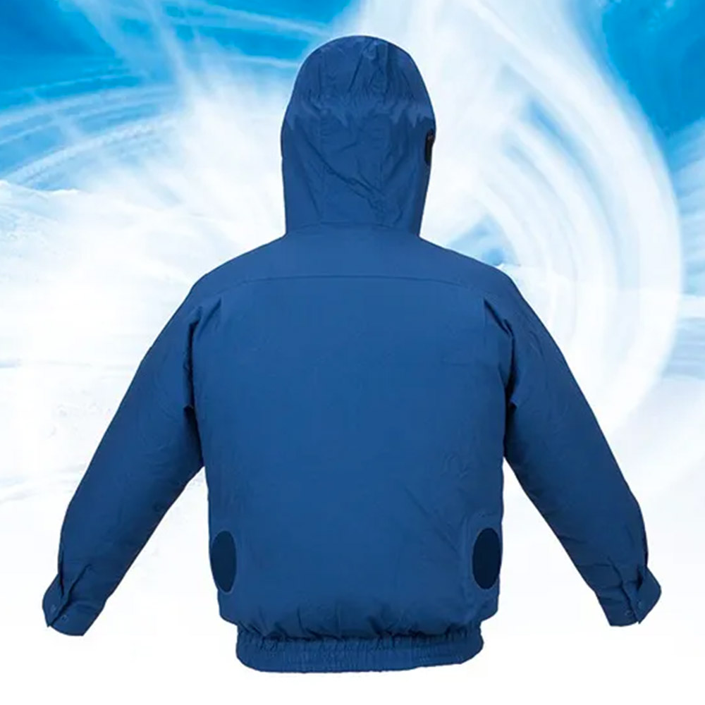 Dispone de dos ventiladores situados en la parte trasera a ambos lados del cuerpo, fácilmente desmontables para el lavado de la chaqueta.