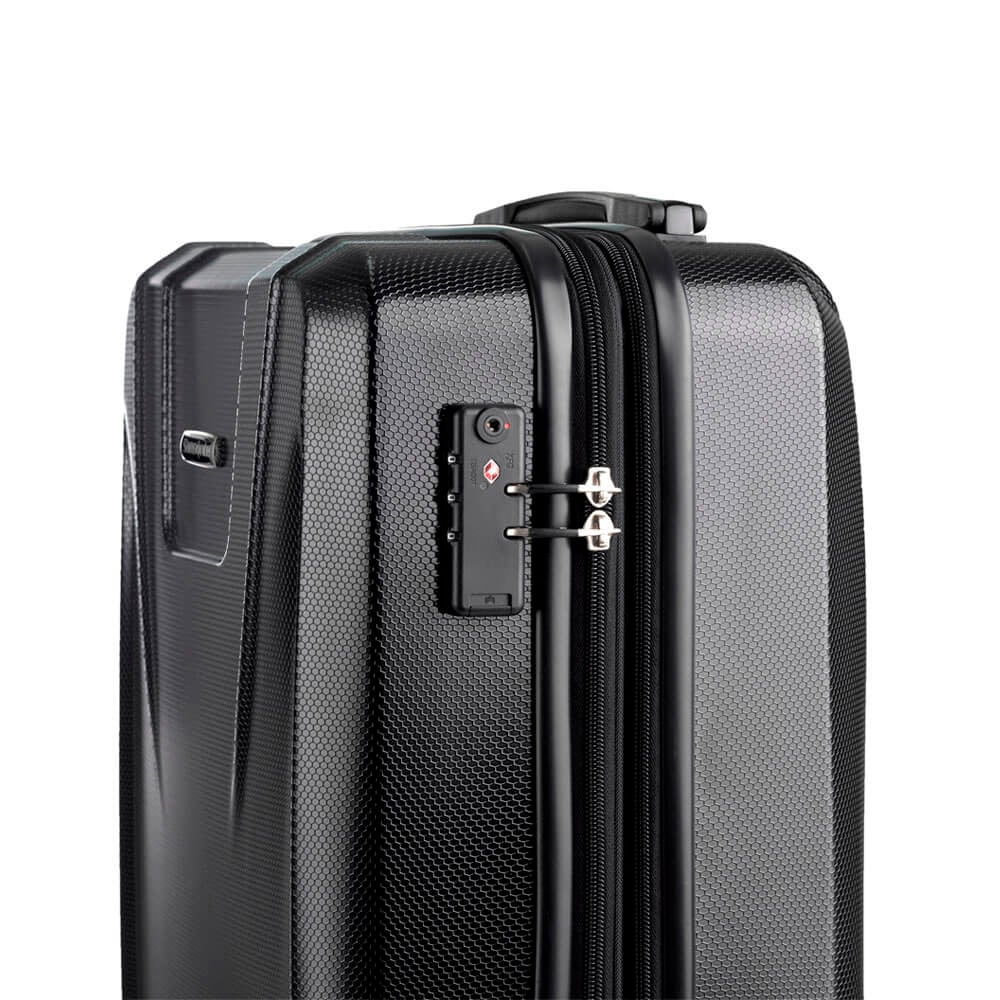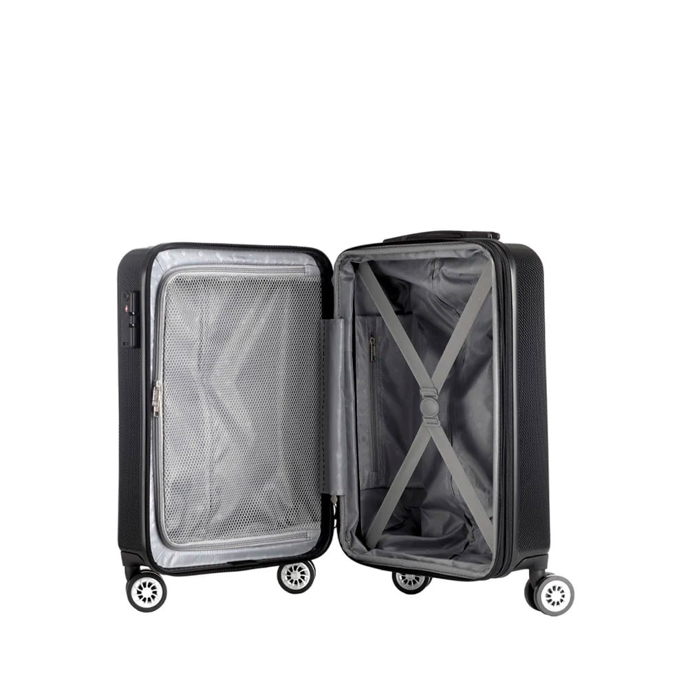 Viene con candado TSA, ruedas dobles y expandible en todos sus tamaños.