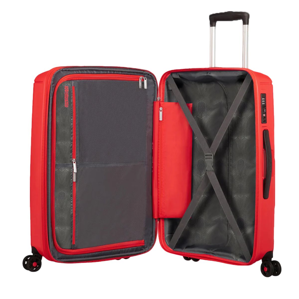 ¡Despierta tu espíritu aventurero con la maleta mediana de la colección Sunside Sunset en vibrante color rojo de American Tourister! Su tamaño te brinda amplio espacio para tus pertenencias, mientras que su cubierta dura te garantiza una protección impecable. Con su panel divisor de malla, bolsillo con cierre y cintas elásticas cruzadas, mantén todo organizado durante tus viajes. Además, su spinner de 8 ruedas te permite desplazarte sin esfuerzo y el candado TSA te entrega la tranquilidad de tus objetos. ¡Prepárate para vivir experiencias únicas con la maleta mediana de American Tourister!