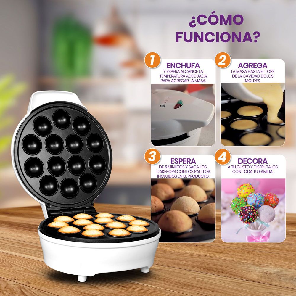 Diviértete junto a toda la familia haciendo unos ricos bizcochuelos y decóralos como quieras con esta increíble Cake Pop Maker de la marca Blanik. Ideal para acompañar todo tipo de celebraciones como cumpleaños, bautizos, matrimonios y más. Es muy fácil de usar y limpiar. Puedes hacer hasta 14 cakes pops en sólo minutos. ¡Crea tus propias bolitas de bizcocho y diviértete decorándolas!