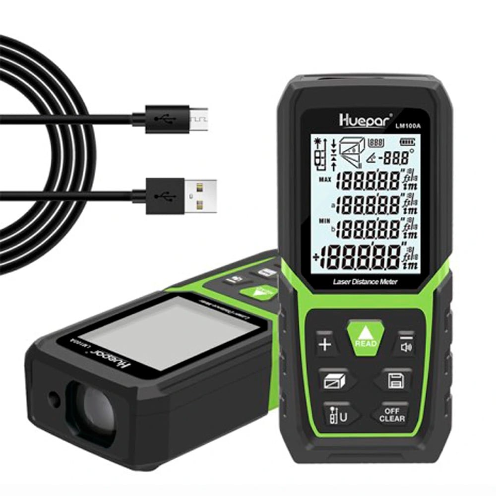 BATERÍA DE LI-ION INCORPORADA Y SENSOR ANGULAR ELÉCTRICO: alimentado por una batería de Li-ion de gran capacidad, el medidor de láser huepar ofrece una duración extraordinaria para trabajos de todo el día y puede funcionar hasta 8000 veces cuando está completamente cargado. No es necesario reemplazar la batería con frecuencia para que su trabajo sea más eficiente. Equipado con un sensor angular electrónico, el medidor de distancia láser ofrece una mayor precisión y mediciones de ángulo más rápidas en comparación con los medidores de nivel de burbuja.