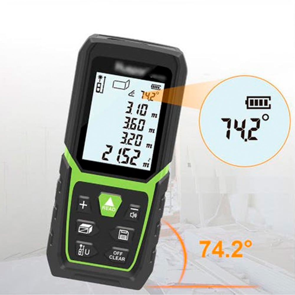 MÚLTIPLES MODOS DE MEDICIÓN: Esta medida de distancia láser ofrece ángulos, áreas, distancias, volúmenes y modos de medición pitagóricos. Con funciones de memoria continua de datos, sumas y restas, calibración, cálculo automático de área y volumen y memoria de datos de 30 grupos, es ideal para aplicaciones en el hogar y la construcción o industrias.