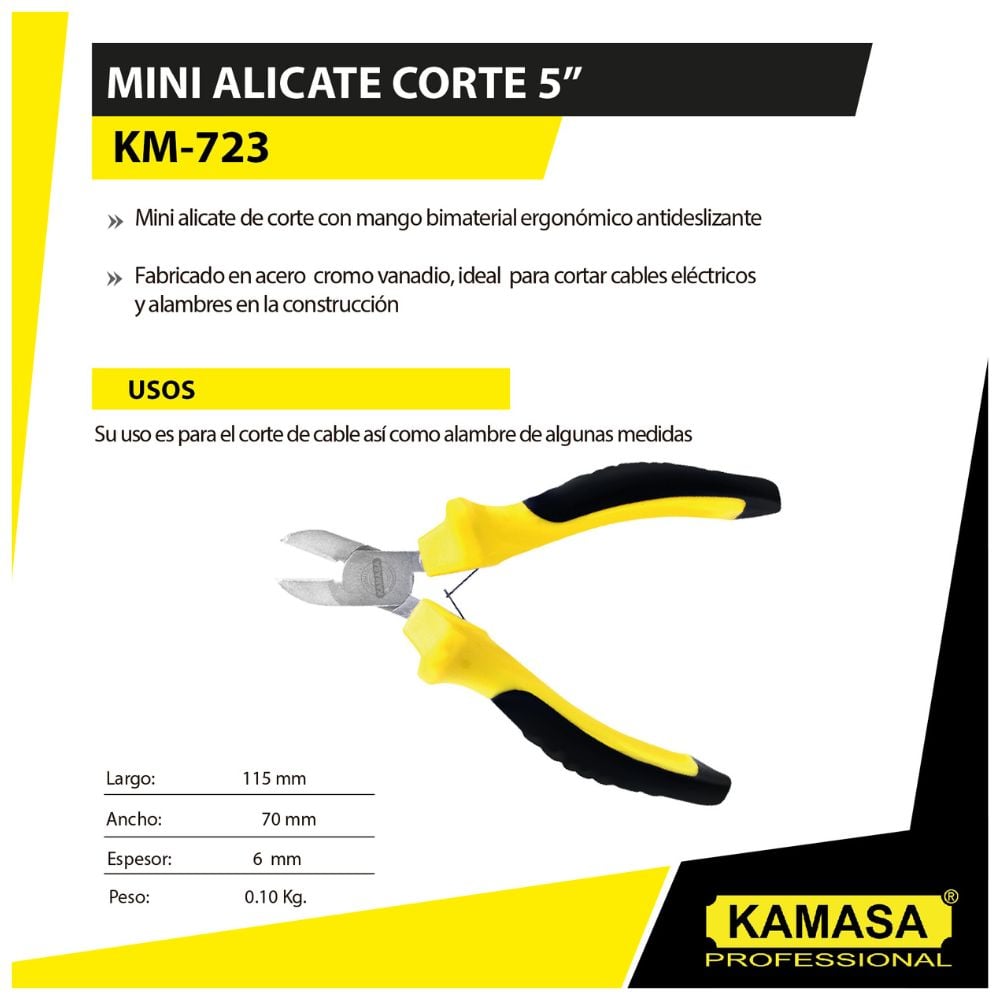 Minialicate de corte de 5″ marca Kamasa,ideal para trabajos de electrónica,bricolaje y precisión.