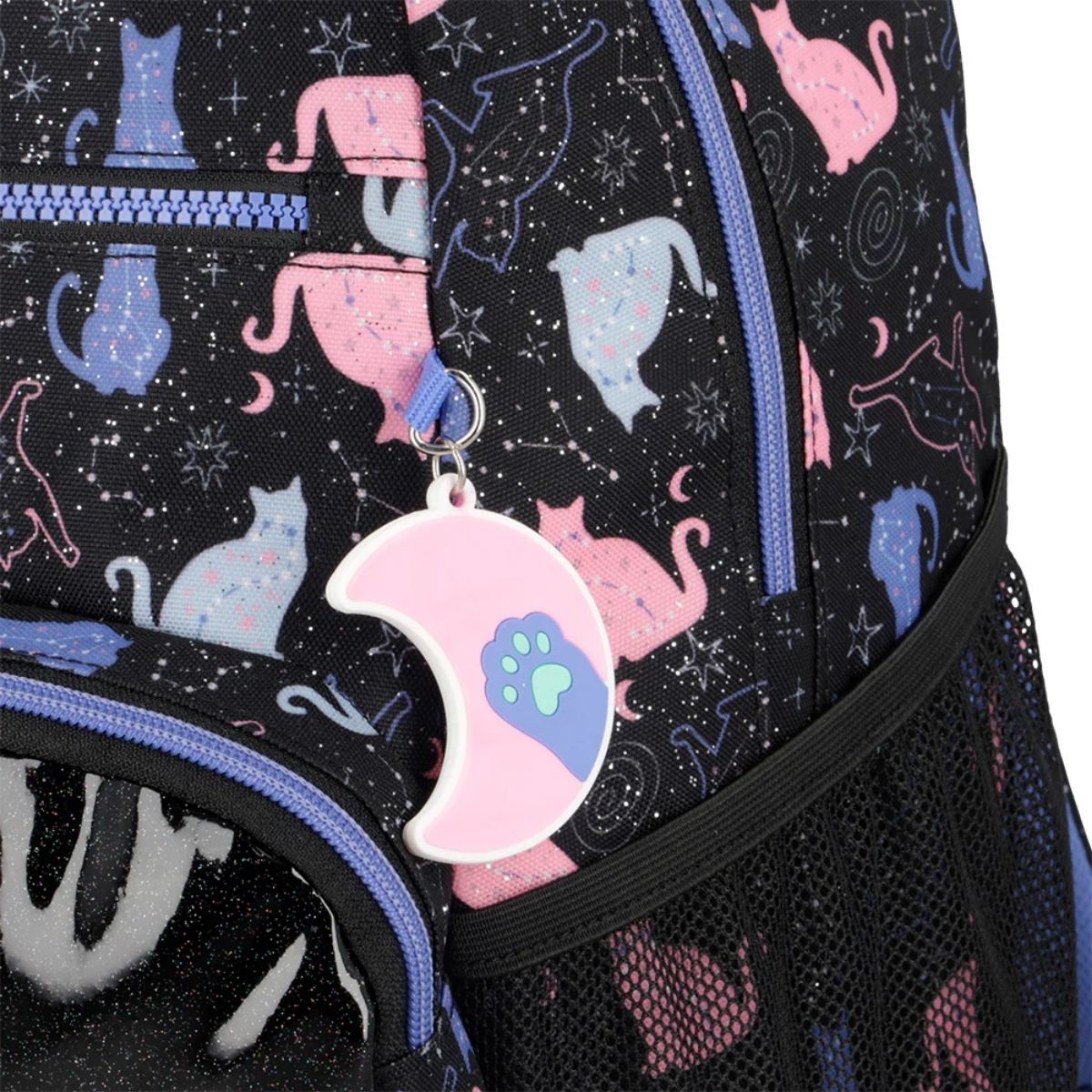 La mochila Xtrem Bolt Black Purple Cat combina diseño divertido y funcionalidad para el día a día escolar. Su tamaño permite transportar carpetas oficio sin problemas, mientras que el sistema de cierre Kissing Lock brinda mayor seguridad. Incluye colgante decorativo y un forro interior fabricado con material reciclado, ofreciendo organización, resistencia y comodidad para el uso diario.