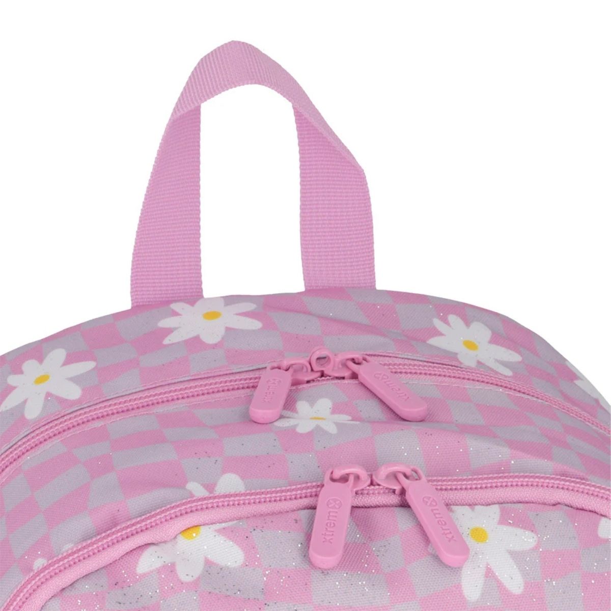 La mochila Xtrem Hopper Pink Flower combina estilo y funcionalidad para el uso escolar diario. Su amplio tamaño permite transportar cuadernos tamaño oficio, libros y accesorios con total comodidad. Incluye bolsillo lateral para botella, colgante decorativo floral y sistema de cierre Kissing Lock para mayor seguridad. Su interior con material reciclado la convierte en una opción práctica y responsable para el colegio.