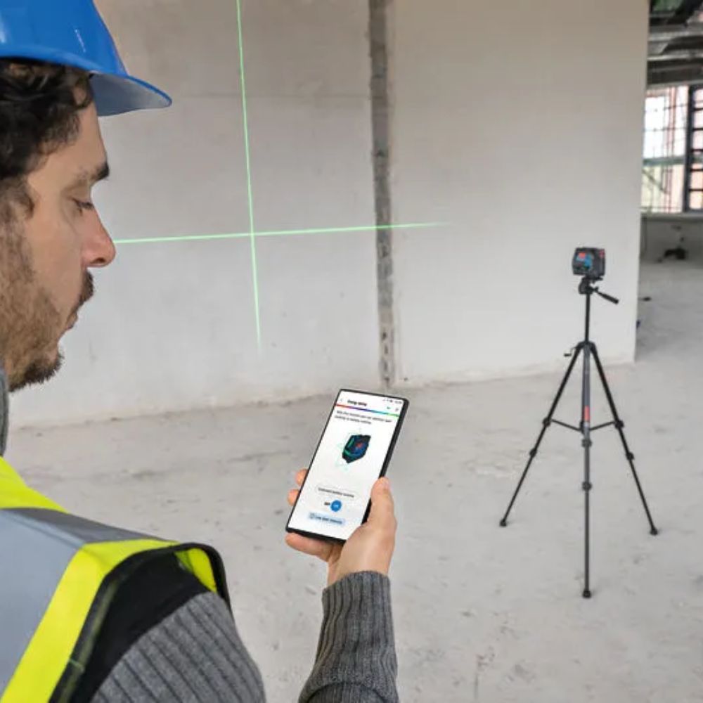 El GCL 12V-50-22 CG Professional es tu gran aliado para trabajos de precisión. Con una robusta carcasa engomada reforzada y una clasificación IP65, está diseñado para resistir el polvo y el agua para que puedas concentrarte en el trabajo. La app Levelling Remote para el control remoto de las líneas y puntos láser garantiza menos tiempo de ajuste y más tiempo de trabajo. Además, con la doble fuente de alimentación dual puedes cambiar entre la batería de iones de litio de 12 V y la alimentación de reserva con pilas alcalinas AA, lo que garantiza que no haya tiempo de inactividad debido a una batería descargada y no interrumpe el trabajo.