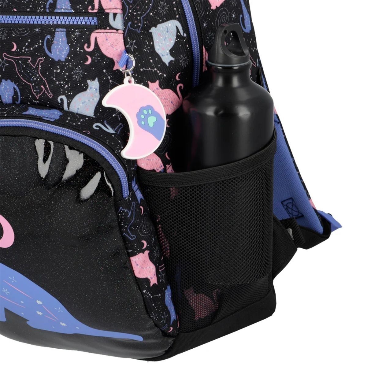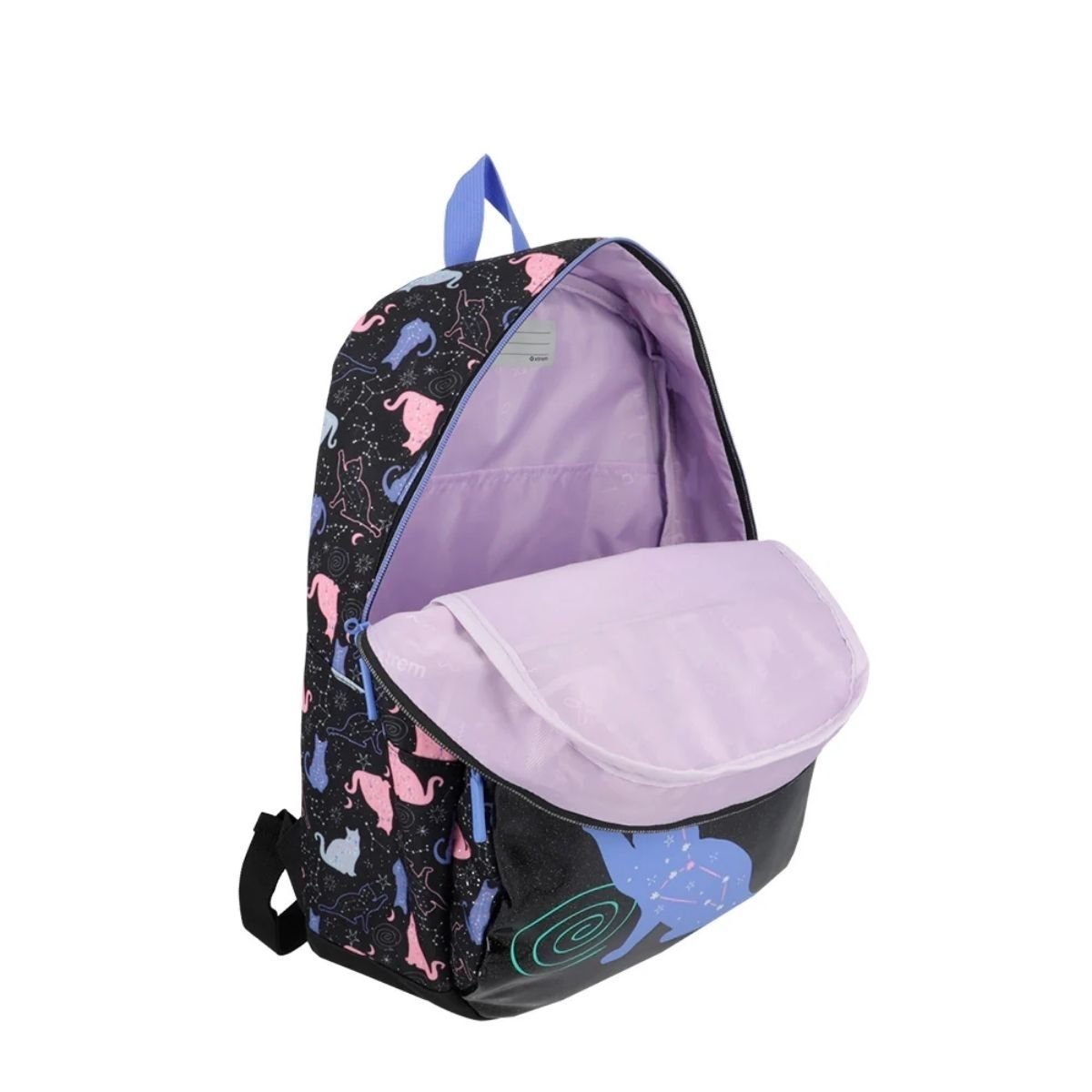 El pack escolar Xtrem Black Purple Cat combina estilo y organización para el día a día. Incluye la mochila Bolt de 25L con capacidad para carpetas oficio y cierre Kissing Lock de seguridad, junto a la cartuchera University de gran capacidad con tres compartimentos independientes. Su diseño de gatitos con constelaciones y materiales resistentes con forro reciclado lo convierten en un set práctico, cómodo y duradero para la escuela.