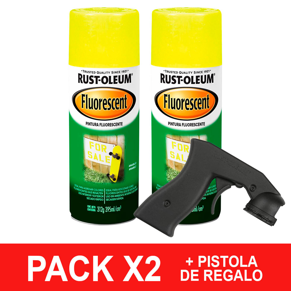 Pack Pintura Aerosol Fluorescente Amarillo 312g x2 + Pistola