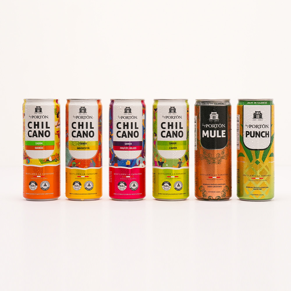Descubre el Pack de Sabores Variados By Portón,una selección especial con los sabores más refrescantes y deliciosos. Disfruta de **4 Chilcanos By Portón,Punch y Mule,todos elaborados con pisco puro y sin alcoholes añadidos. La mejor opción para quienes buscan variedad y calidad en cada lata.