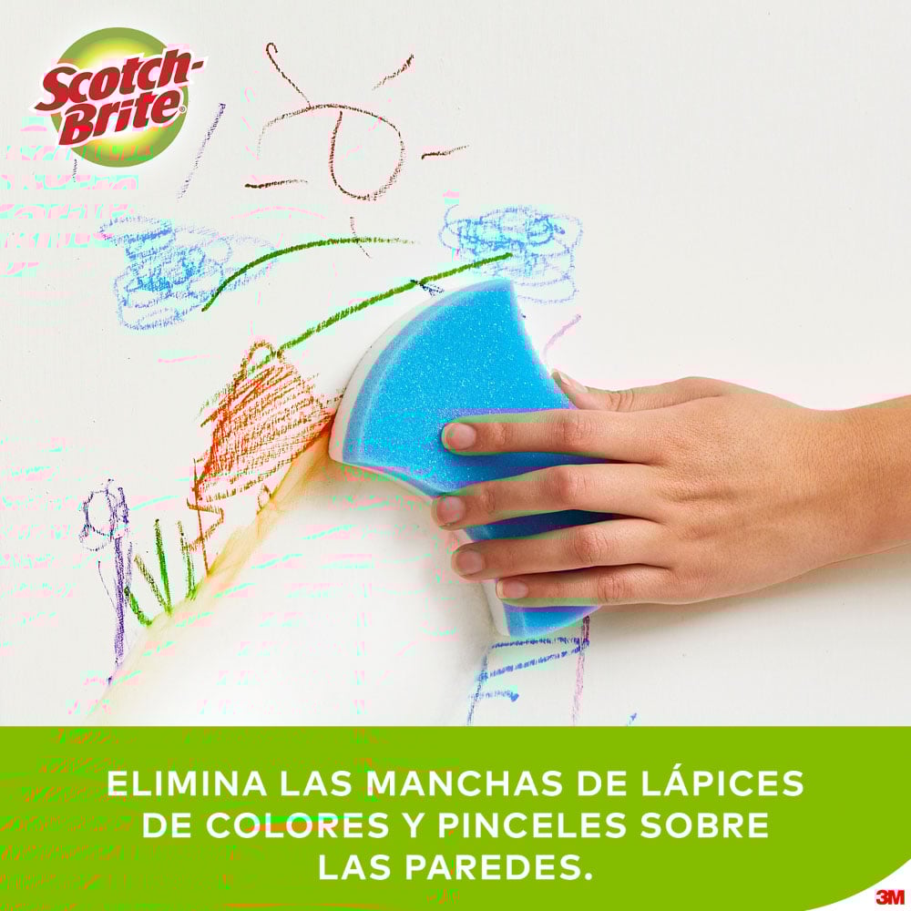 Especial para manchas profundas. Scotch-Brite® Borramanchas especial para la limpieza de manchas profundas como tinta,hollin,residuos grasosos y mugre en paredes y pisos.