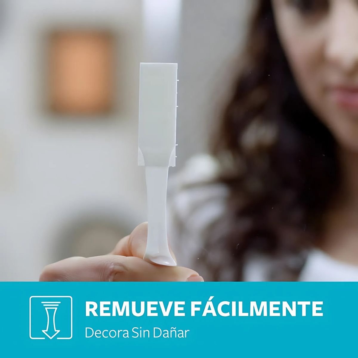 Cada paquete contiene 4 tiras,suficientes para colgar cuadros de tamaño mediano. Estas tiras se adhieren firmemente y se pueden remover sin dejar residuos,permitiendo reorganizar o redecorar espacios fácilmente.