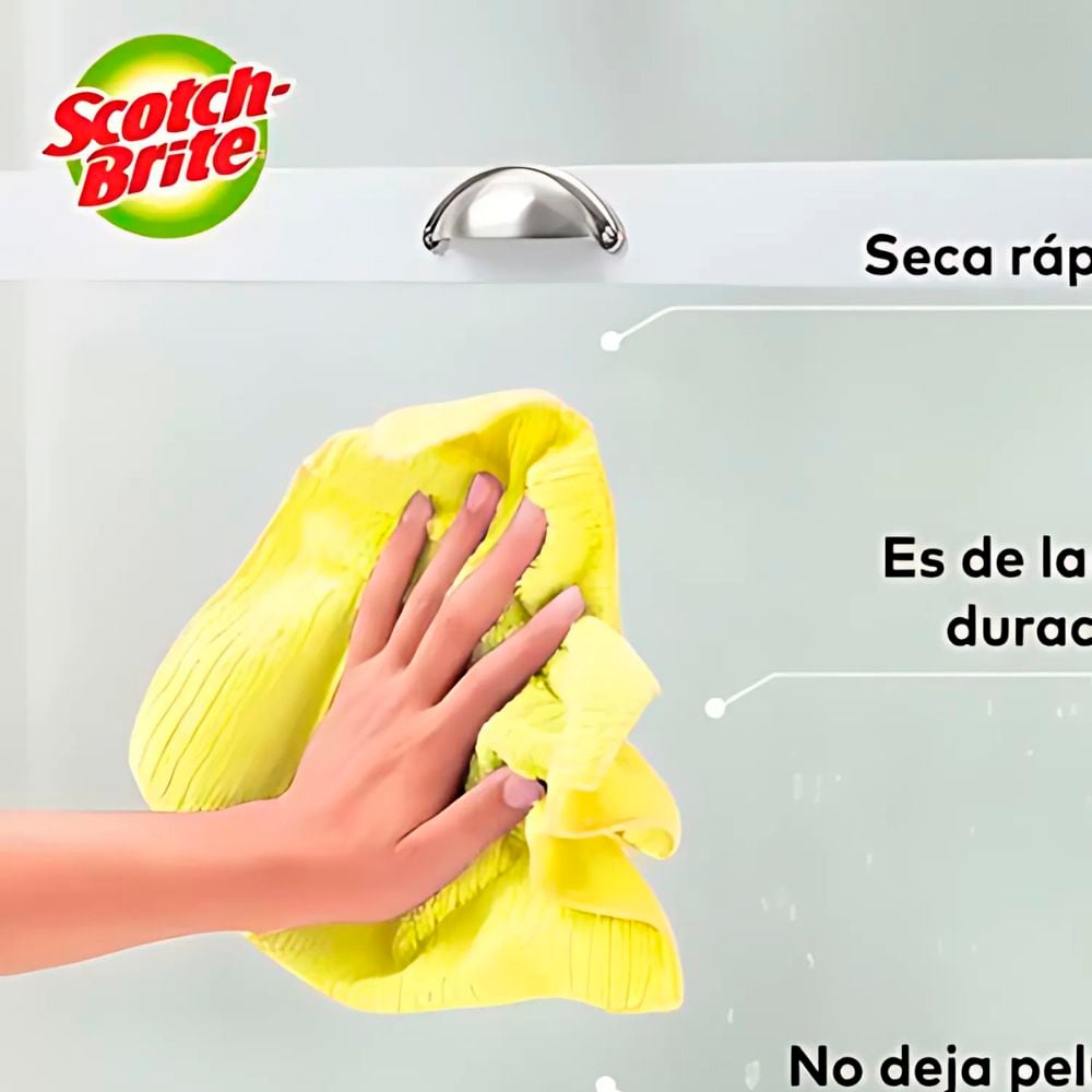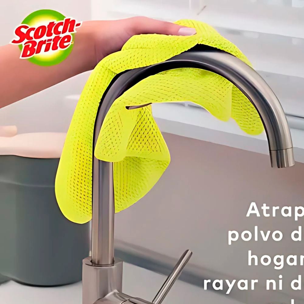 Nota: El Paño de Microfibra Scotch-Brite es una solución eficiente y práctica para mantener tus superficies impecables. Su diseño innovador asegura resultados de calidad sin esfuerzo.