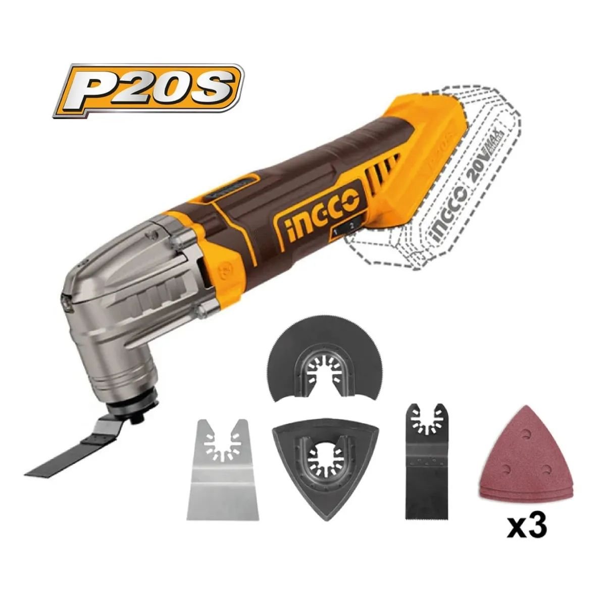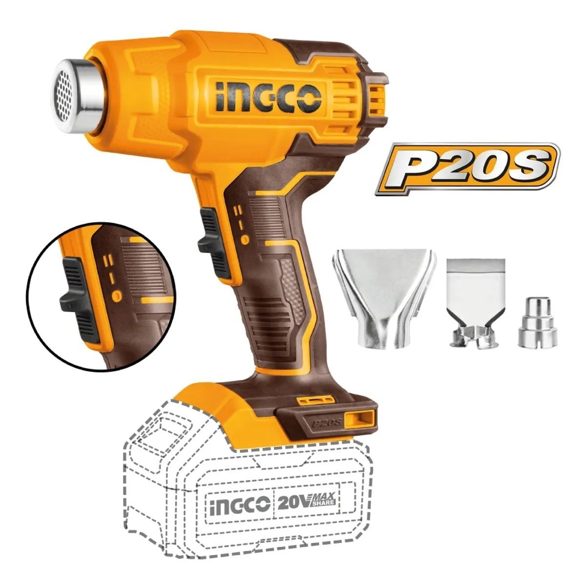 Kit Pistola de Calor + Multiherramienta Ingco COSLI230703 20V P20S + 2 Baterías