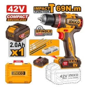 Taladro Percutor INGCO 42V 69Nm Brushless + Kit CIDLI426981