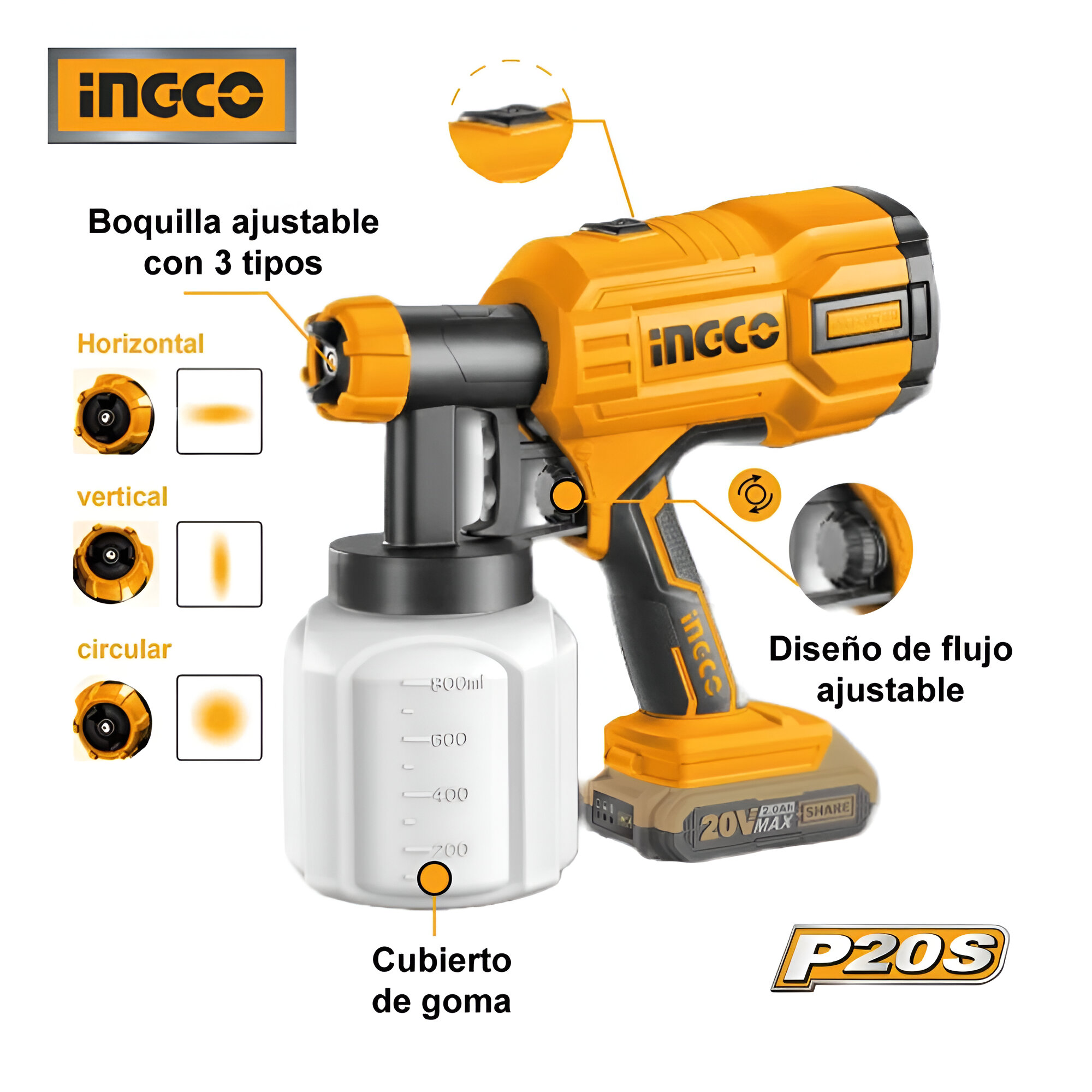 Pistola De Pintar 20v Inalambrica Ingco CSGLI20406