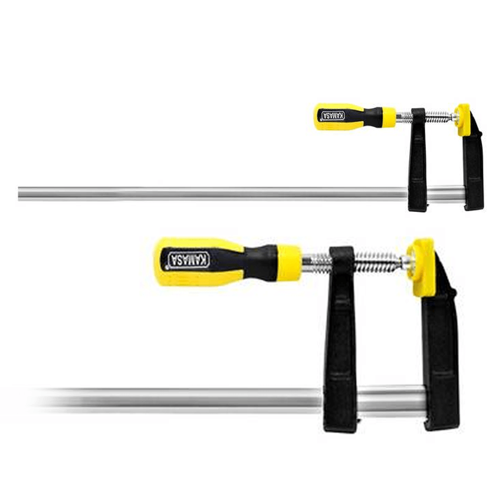 Prensa de carpintero 100×600, fabricada en acero pulido con mango de goma bimaterial , enrosque de acero y punta plastica.