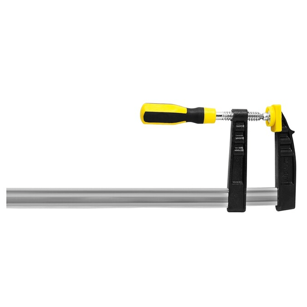Prensa de carpintero 120×400, fabricada en acero pulido con mango de goma bimaterial , enrosque de acero y punta plástica.