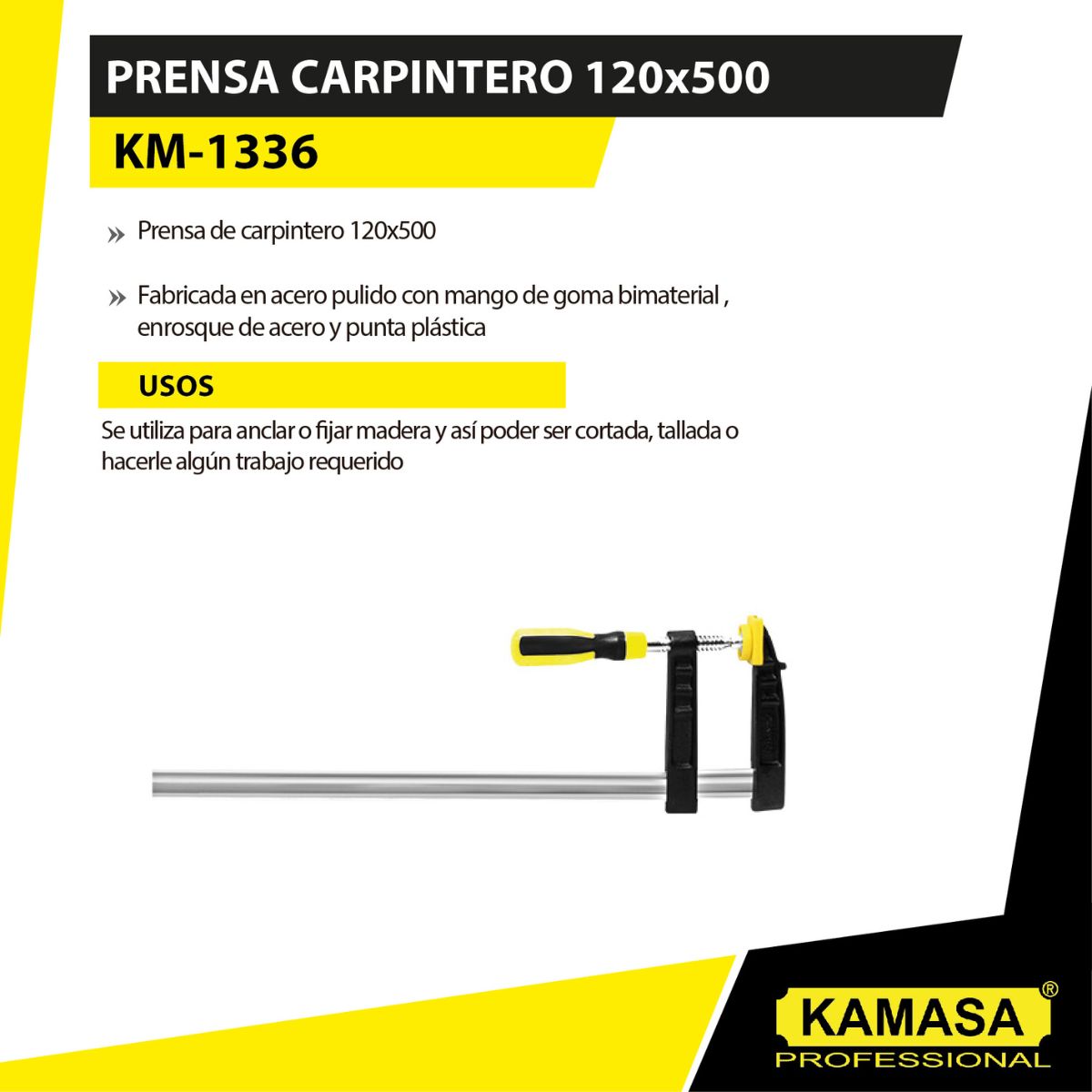 | Producto: Prensa Carpintero Sargento 120x1500mm Prensa F Kamasa KM559 Características: Ficha técnica: Incluye: |