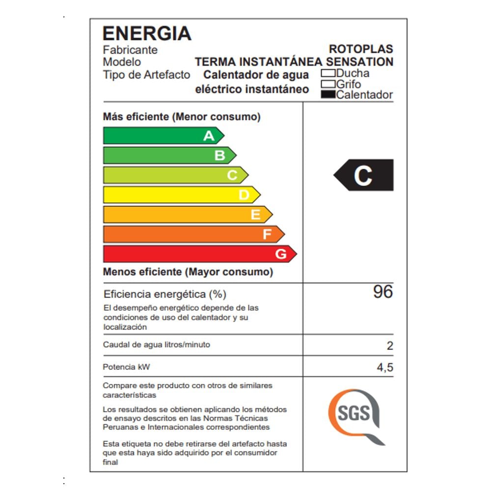 Modelo Terma instantánea Sensation