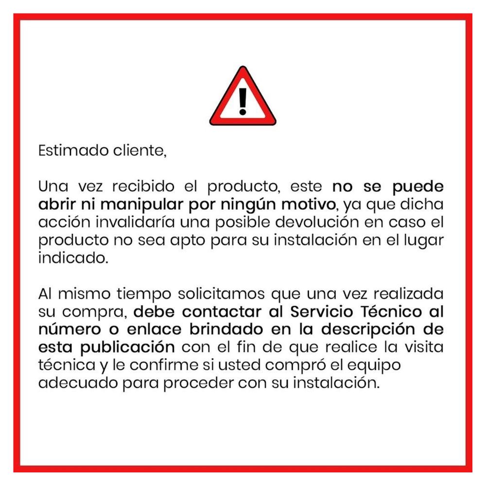 Al mismo tiempo solicitamos que una vez realizada su compra, debe contactar al Servicio Técnico al número o enlace brindado en la descripción de esta publicación con el fin de que realice la visita técnica y le confirme si usted compró el equipo adecuado para proceder con su instalación.