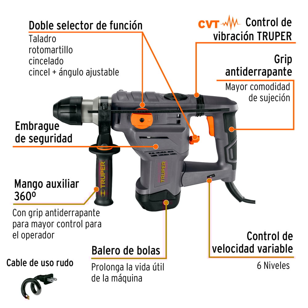 Mango con sistema de Control de Vibración Truper (CVT) que reduce las vibraciones, haciendo el trabajo más confortable y seguro para el operador.