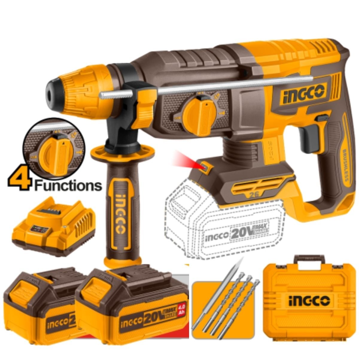 Rotomartillo Inalámbrico Ingco CRHLI20268 20V Brushless SDS Plus 2.5J