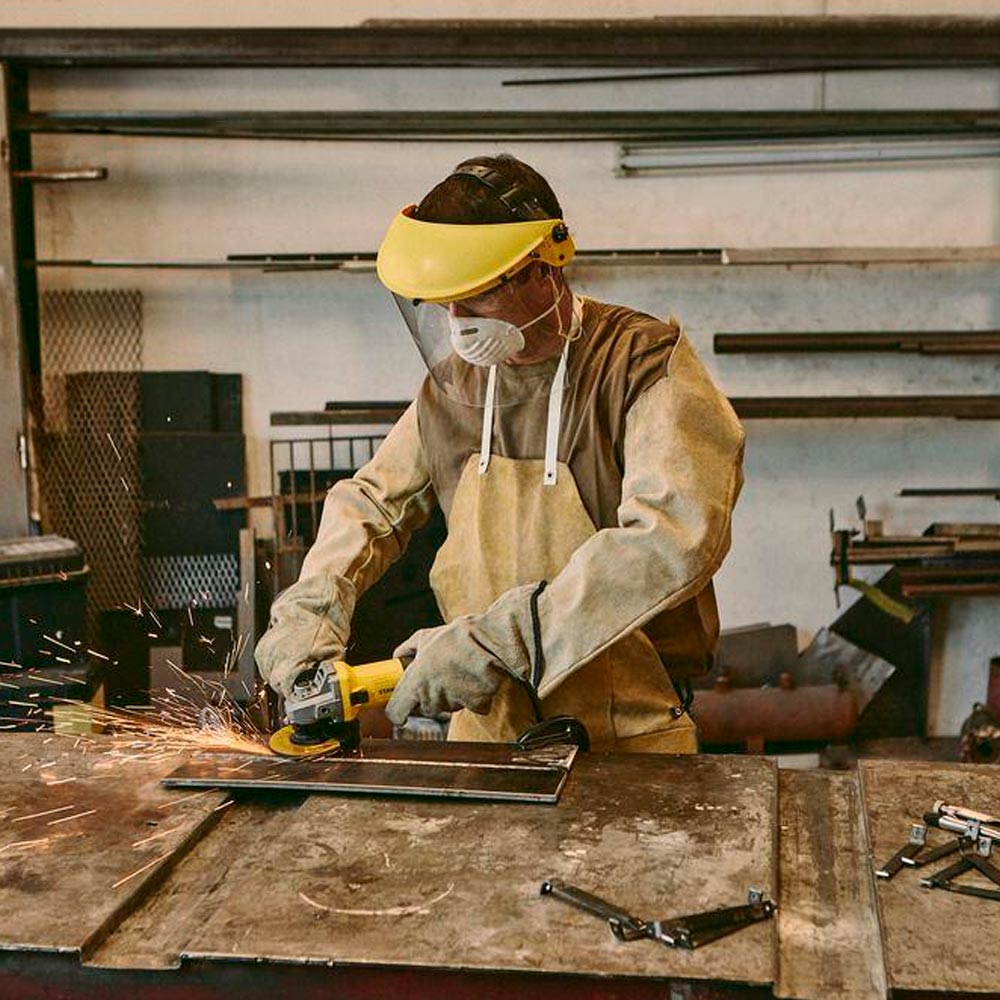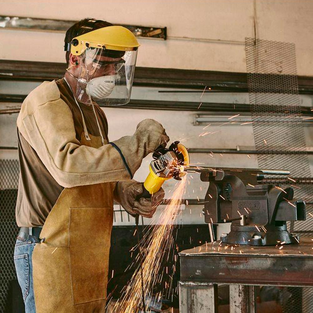 Uso en trabajos en metal, fundiciones, corte y rectificado de piezas metálicas y soldaduras.