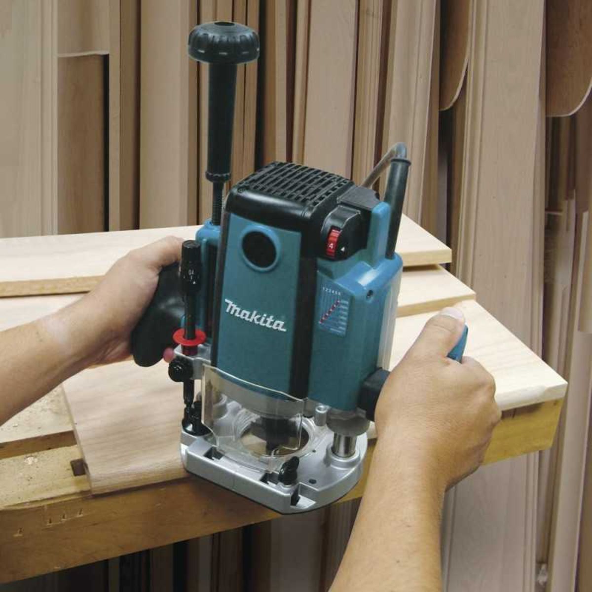 La ruteadora Makita RP2301FC de 2100W combina potencia y precisión para afrontar incluso las aplicaciones de enrutamiento más exigentes.