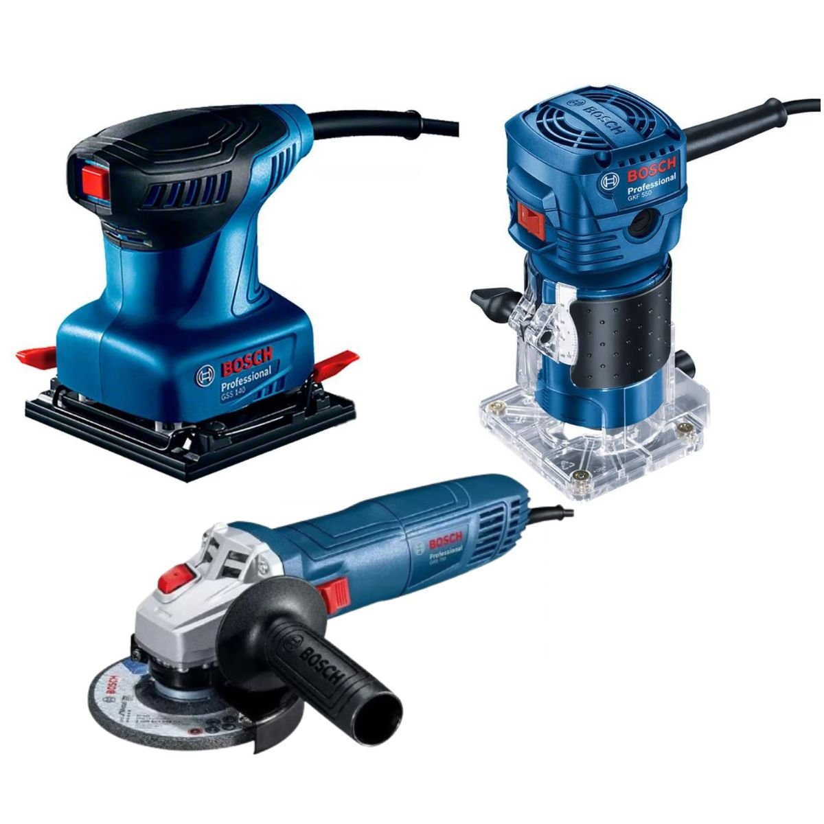Ruteadora GKF 550 + Lijadora GSS 140 + Esmeril GWS 700 Bosch