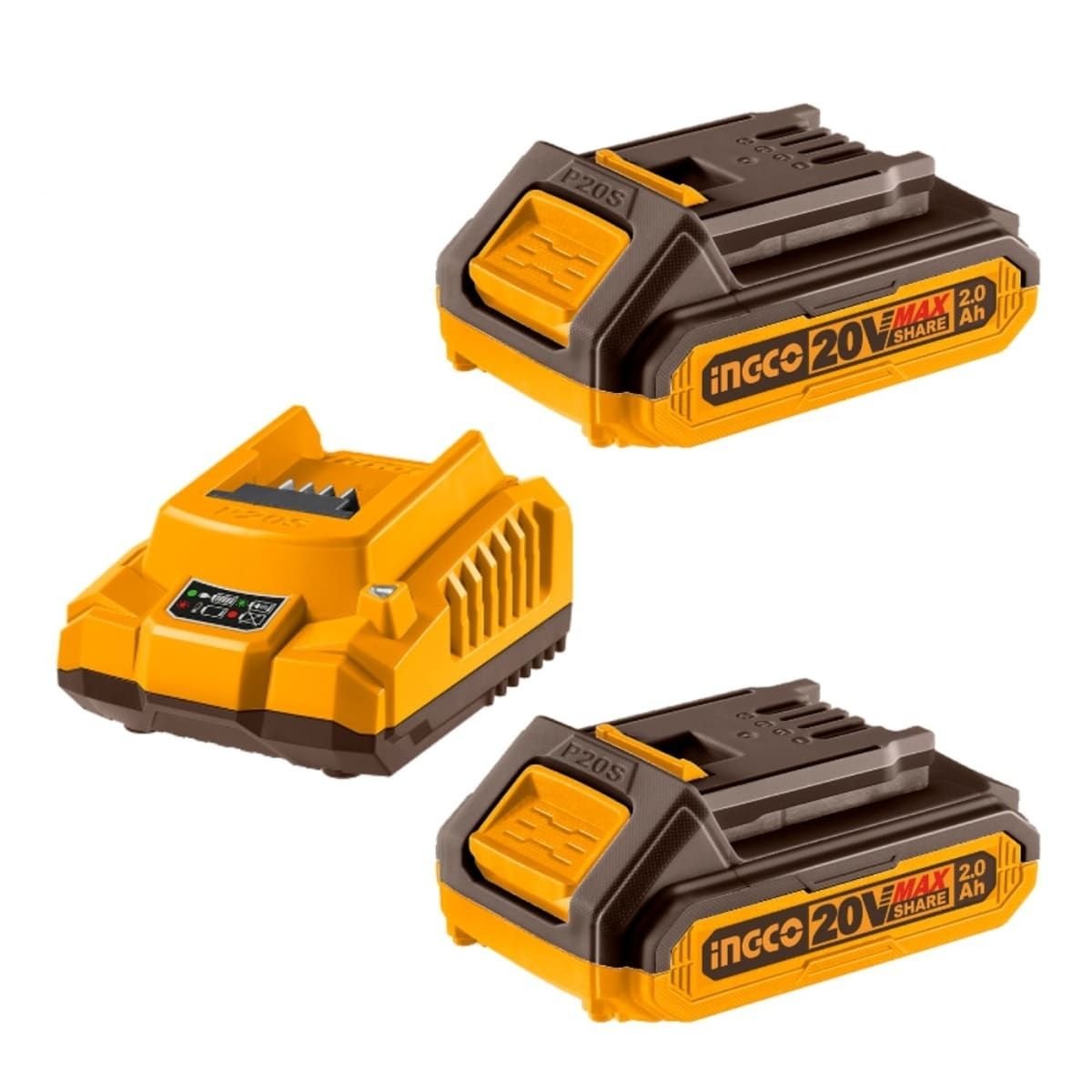 Set de alimentación INGCO ideal para herramientas inalámbricas de la línea P20S. Ofrece energía confiable y continua para trabajos diarios, permitiendo mayor autonomía y practicidad gracias a sus baterías intercambiables y cargador inteligente.