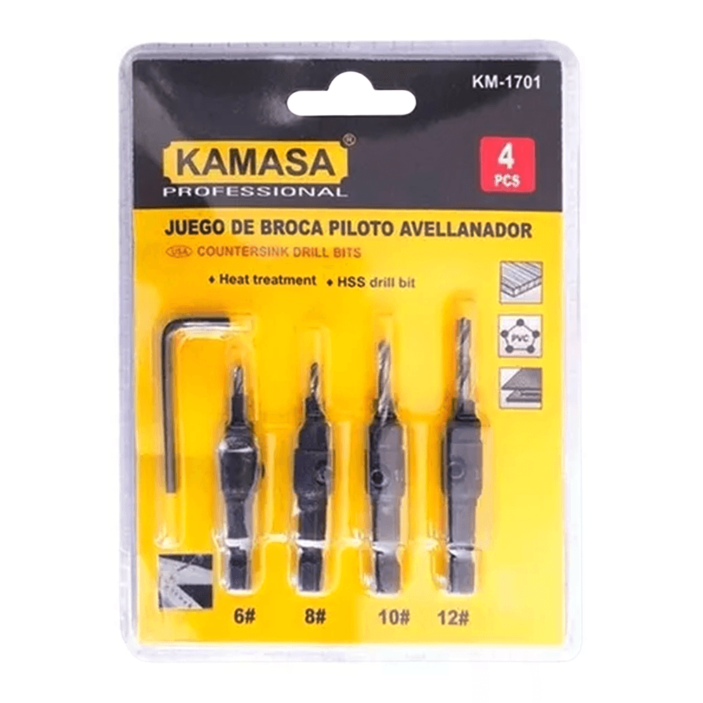Set 4 Brocas Piloto Avellanador #6 #8 #10 #12 Kamasa KM1701