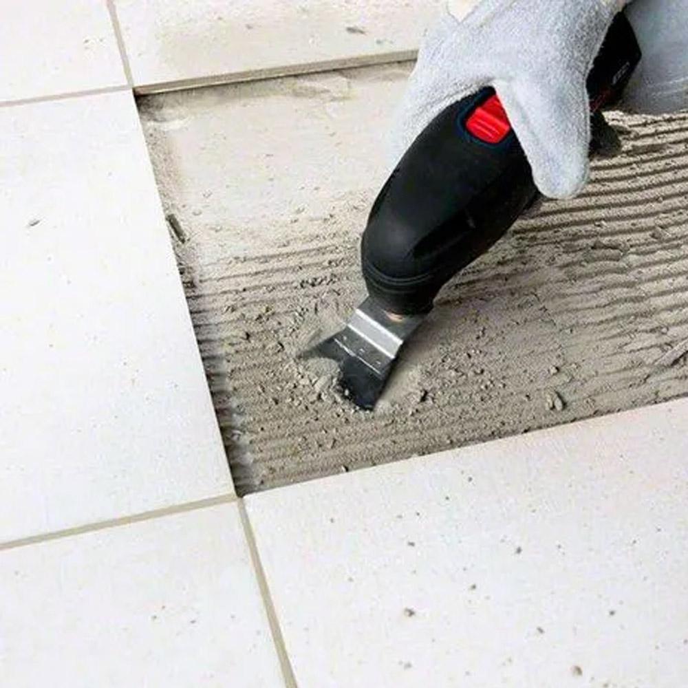 Diseñado para trabajos de demolición y renovación: remoción de mortero, adhesivo, restos de baldosas, recortes en baldosas de pared/piso, eliminación de residuos de instalación anterior.