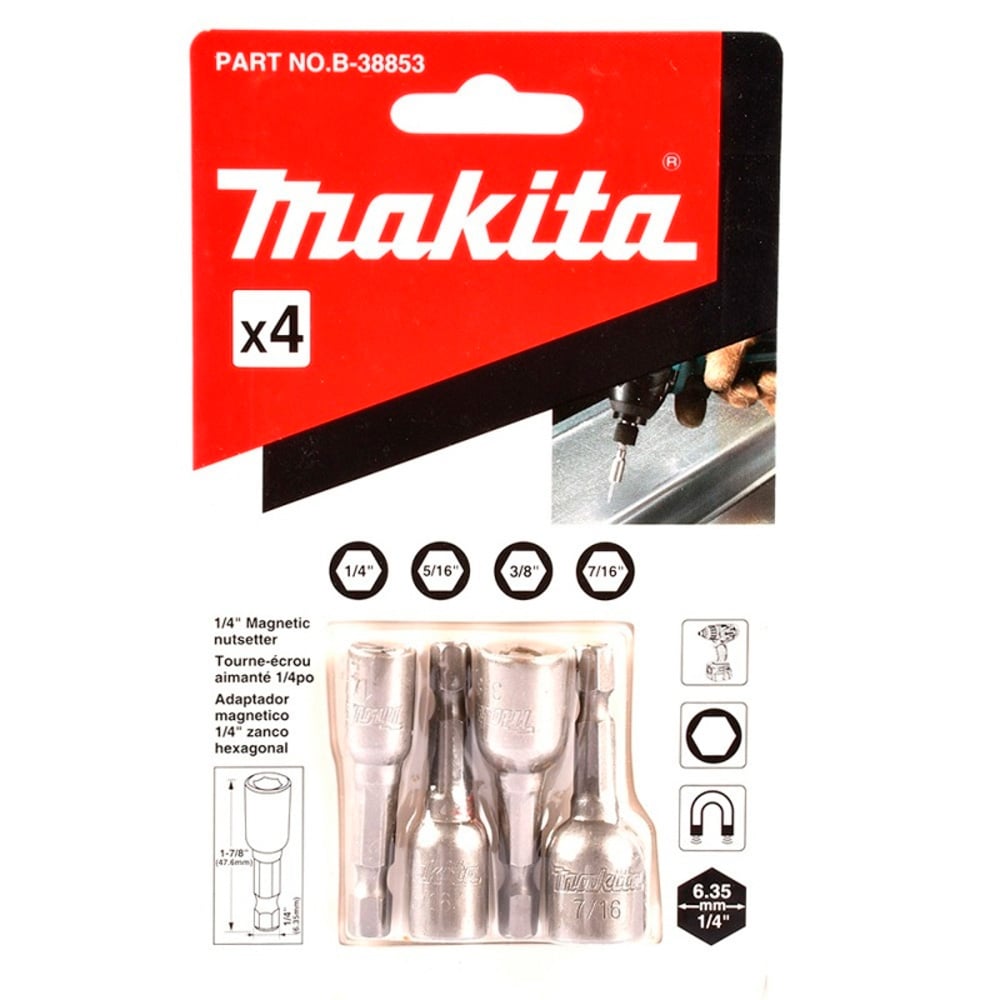 El Set de Dados Magnéticos Makita B-38853 es un conjunto de 4 dados hexagonales con imán, diseñados para facilitar las tareas de atornillado y fijación con herramientas eléctricas como atornilladores de impacto o taladros con portapuntas hexagonal.
