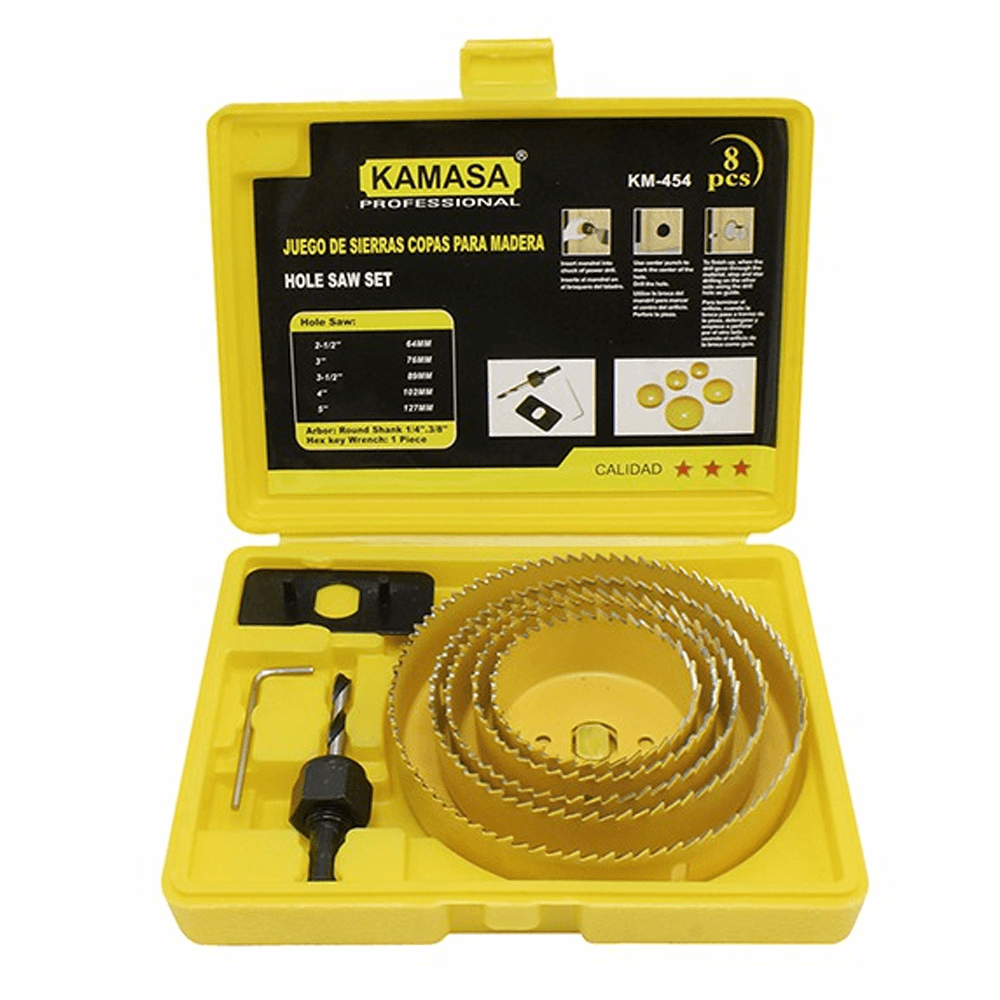 Set Sierra Copas para Madera 8 Pzas 64mm a 127mm Kamasa