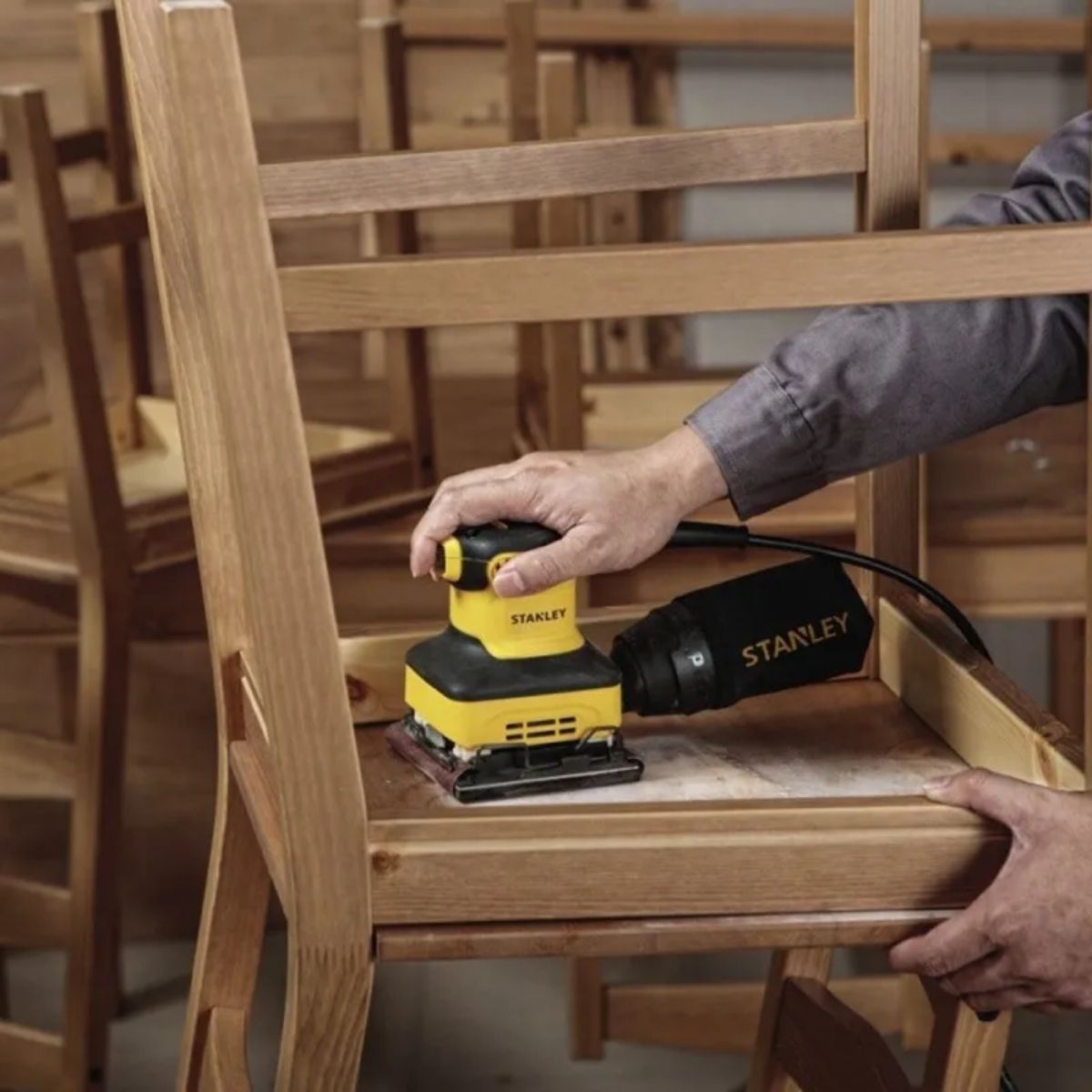 El combo de carpintería Stanley SST1801-K1 es una solución completa para trabajos de corte, desbaste y acabado en madera. Incluye una sierra de mesa de alto rendimiento, una fresadora compacta y una lijadora orbital, cubriendo todo el flujo de trabajo en carpintería: desde el corte hasta el acabado final.