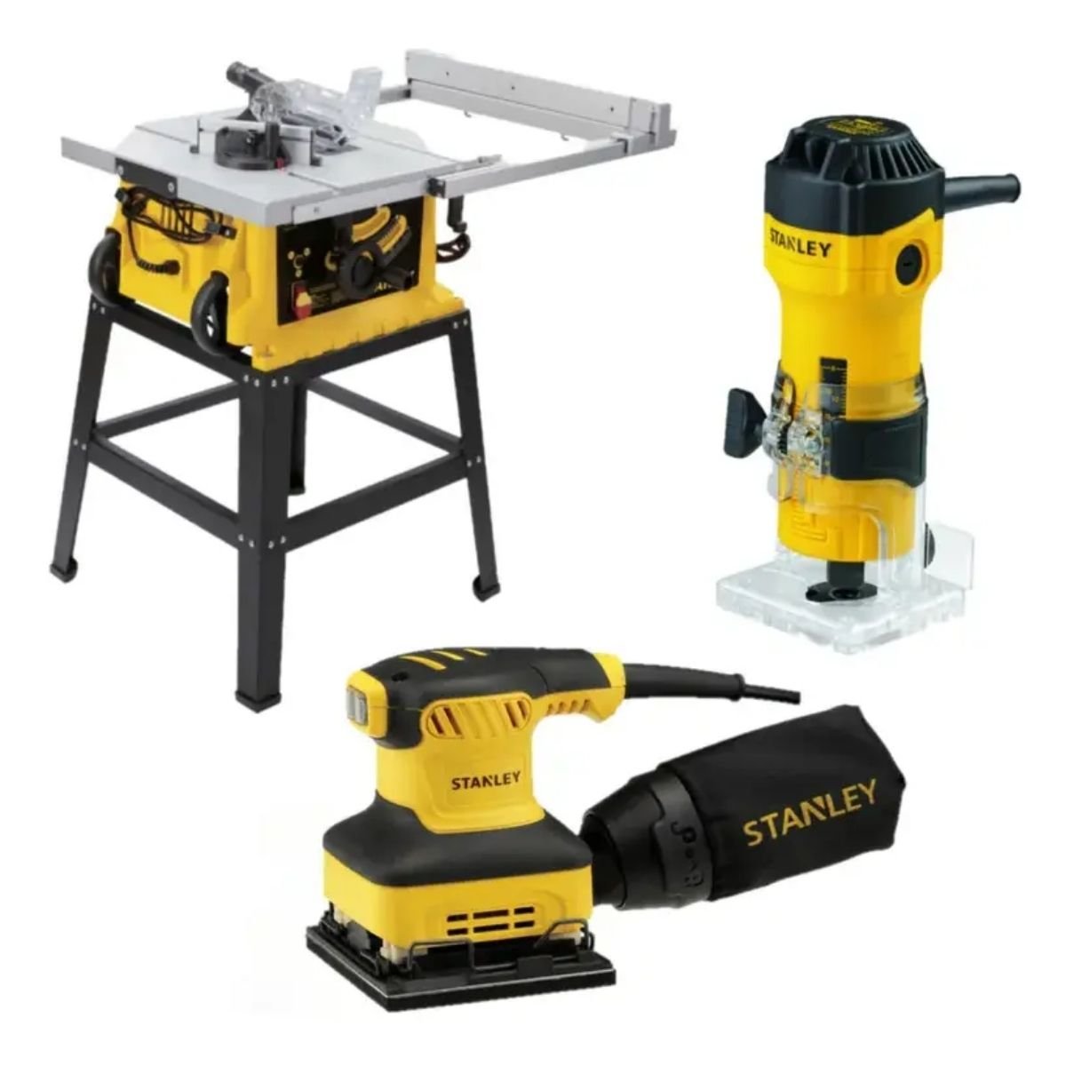 Sierra De Mesa + Fresadora + Lijadora Orbital Stanley