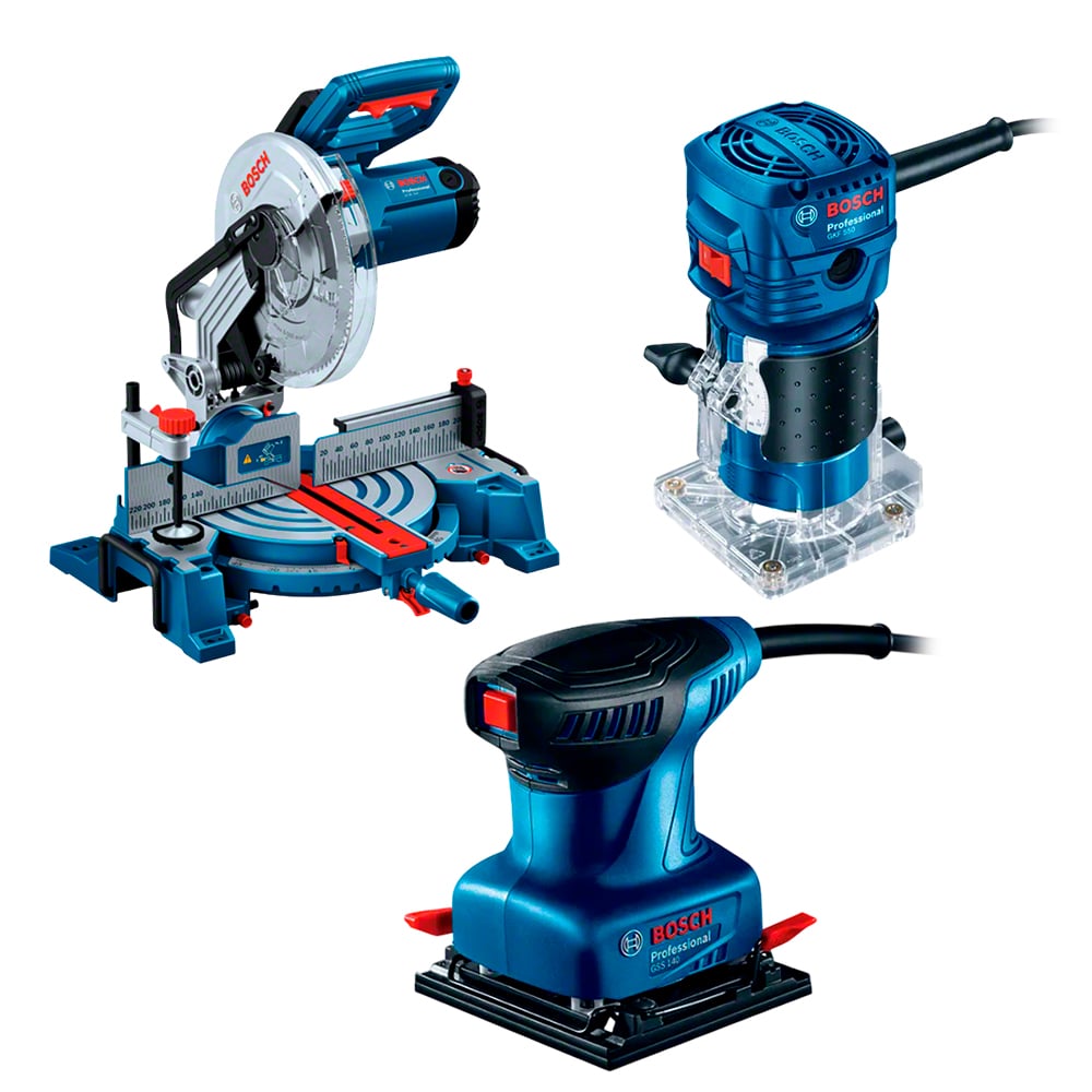 Sierra GCM 254 + Fresadora GKF 550 + Lijadora GSS 140 BOSCH